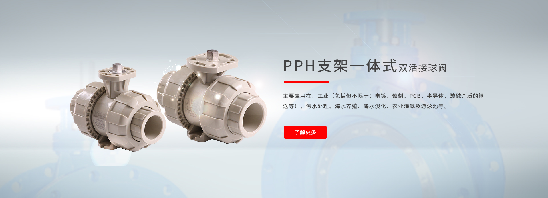 公司專(zhuān)業(yè)生產(chǎn)的閥門(mén)有:雙活接球閥、支架一體式雙活接球閥(方便執(zhí)行器安裝,無(wú)需另外加裝支架)、法蘭式雙活接球閥、活接、單活接止回閥、雙活接止回閥、隔膜閥、蝶閥等;產(chǎn)品滿(mǎn)足國(guó)標(biāo)(GB)、德標(biāo)(DIN)、美標(biāo)(ANSI)、日標(biāo)(JIS)、臺(tái)標(biāo)(CNS)等國(guó)家及地區(qū)標(biāo)準(zhǔn)的要求。